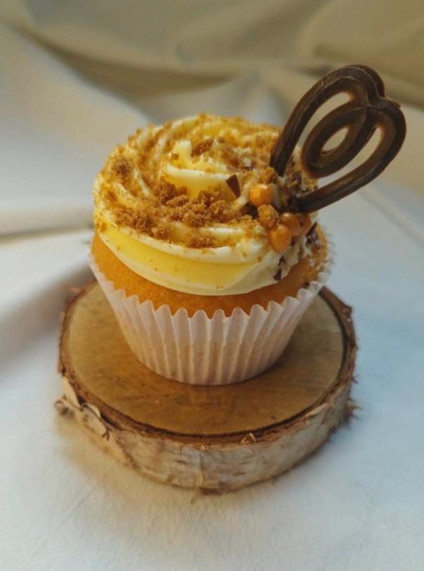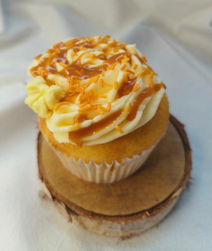 Cake vanille, cœur caramel, crème au beurre à la meringue suisse
