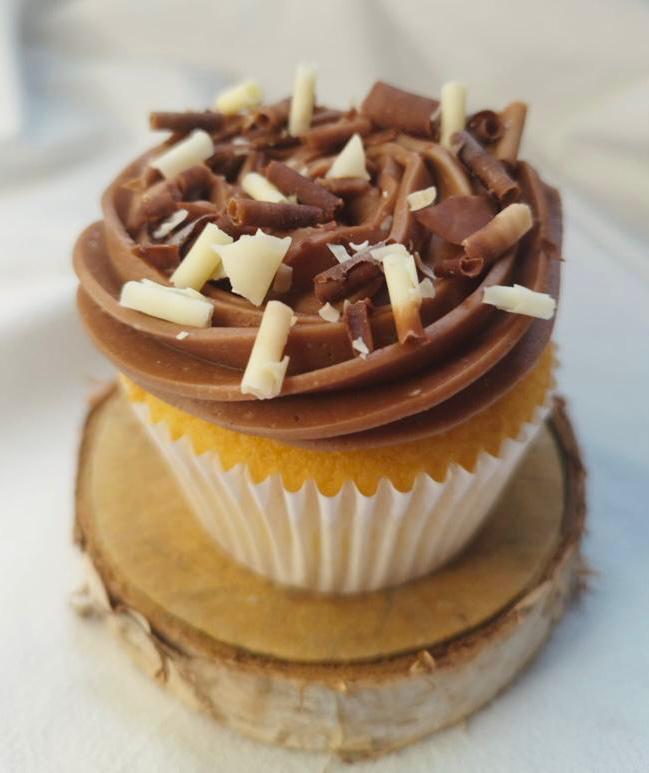 Cake vanille, cœur chocolat, crème au beurre à la meringue suisse au chocolat
